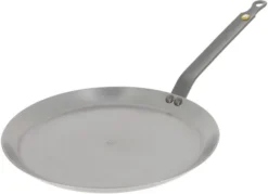 The de Buyer Mineral B Element Crêpe Pan in carbon steel has a specially designed low rim to easily flip and turn over crêpes. Carbon steel is ideal for making truly crispy and tasty crêpes.