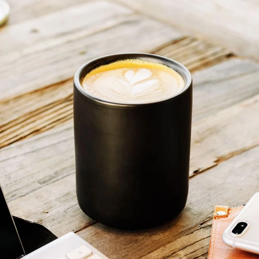 Hold the cup safely in your hands, as the outer wall remains cold. Keeps your coffee hotter for longer as well!