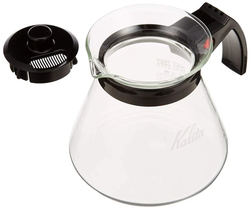 The Kalita Glass Server N coffee server with black handle is made of heat resistant glass and fits perfectly with the Kalita Wave Dripper as well as other major stand alone drippers including Hario V60. Its plastic handle facilitates coffee serving and the lid provides better heat retention. The server is microwave and dishwasher safe. The server has an inprinted scale which allows you to brew precisely the desired quantity of coffee.