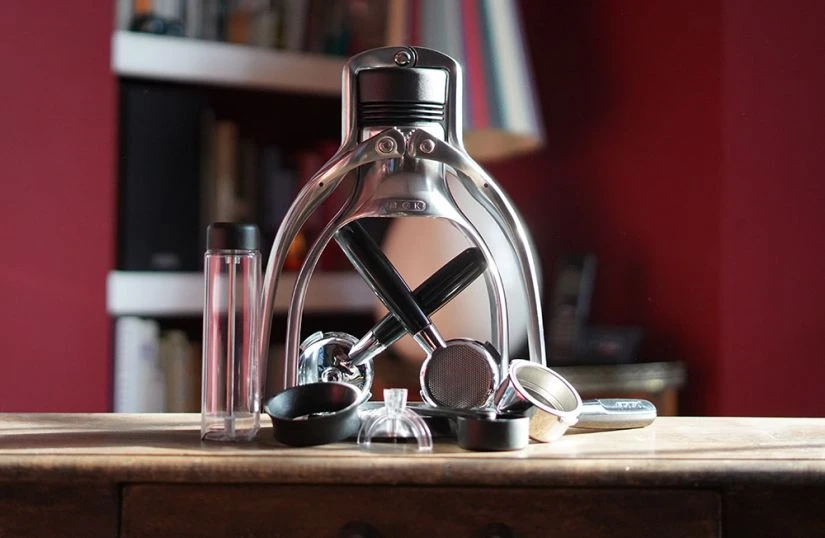 The ROK EspressoGC manual espresso maker is crafted from cast aluminium, steel and glass-composite.