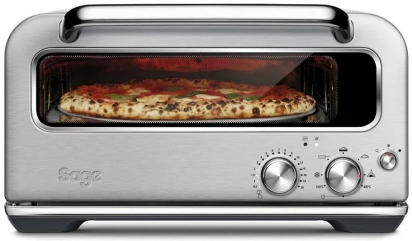 The Sage Smart Oven Pizzaiolo is the first domestic benchtop pizza oven to hit 400°C and cook an authentic wood fired style pizza in just 2 minutes. It replicates the three types of heat generated by a brick oven – conductive, radiant and convective.