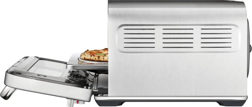 Intense radiant heat is evenly controlled by Sage’s patent pending heating elements so you no longer need to rotate food while cooking. Heat intensifying parabolic reflectors maximise the efficiency of the top heating elements by reflecting the energy onto the crust. Integrated deck to door design moves the pizza closer to the elements and makes it easy to load and unload.