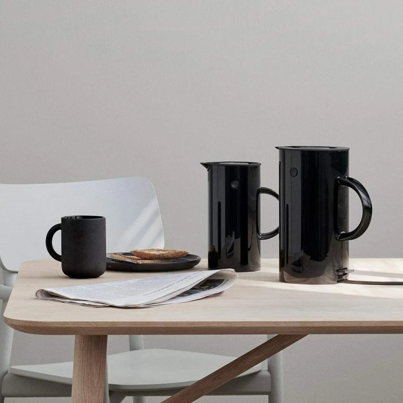 The Stelton EM77 Electric Kettle is designed by Danish designer Erik Magnussen. The kettle has borrowed its shape from the iconic EM77 thermos jug designed by Magnussen in 1977. The kettle has a removable limescale filter.