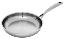 The Swiss Diamond Premium Steel fry pan has an outer layer of stainless steel, and has no sensitive non-stick coating to worry about. The Premium Steel fry pans are care-free and durable, and they can be used on all types of hobs.